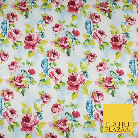 Watercolour Floral Roses Printed Cotton Canvas Fabric